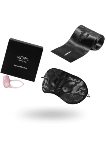 • Contenidos: Anillo vibrador; Esposas de satén; Antifaz satinado.